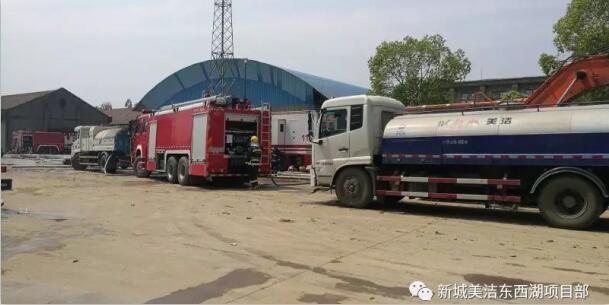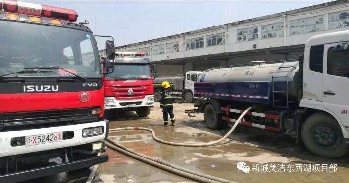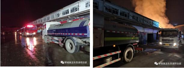 同在東西湖區(qū)的武漢新城美潔環(huán)保技術(shù)服務(wù)有限公司東西湖項(xiàng)目部在得知火情后,立即通知本項(xiàng)目部灑水車隨時(shí)做好協(xié)助救火準(zhǔn)備。當(dāng)晚19:00時(shí),接到上級領(lǐng)導(dǎo)協(xié)助通知,隨即通知項(xiàng)目部車隊(duì)負(fù)責(zé)人章隊(duì)組織力量增援,我項(xiàng)目部立即調(diào)度灑水車2輛、3名工作人員,以最快的速度從2個(gè)環(huán)衛(wèi)作業(yè)點(diǎn)抵達(dá)火災(zāi)現(xiàn)場,并立刻投入到救援工作中。